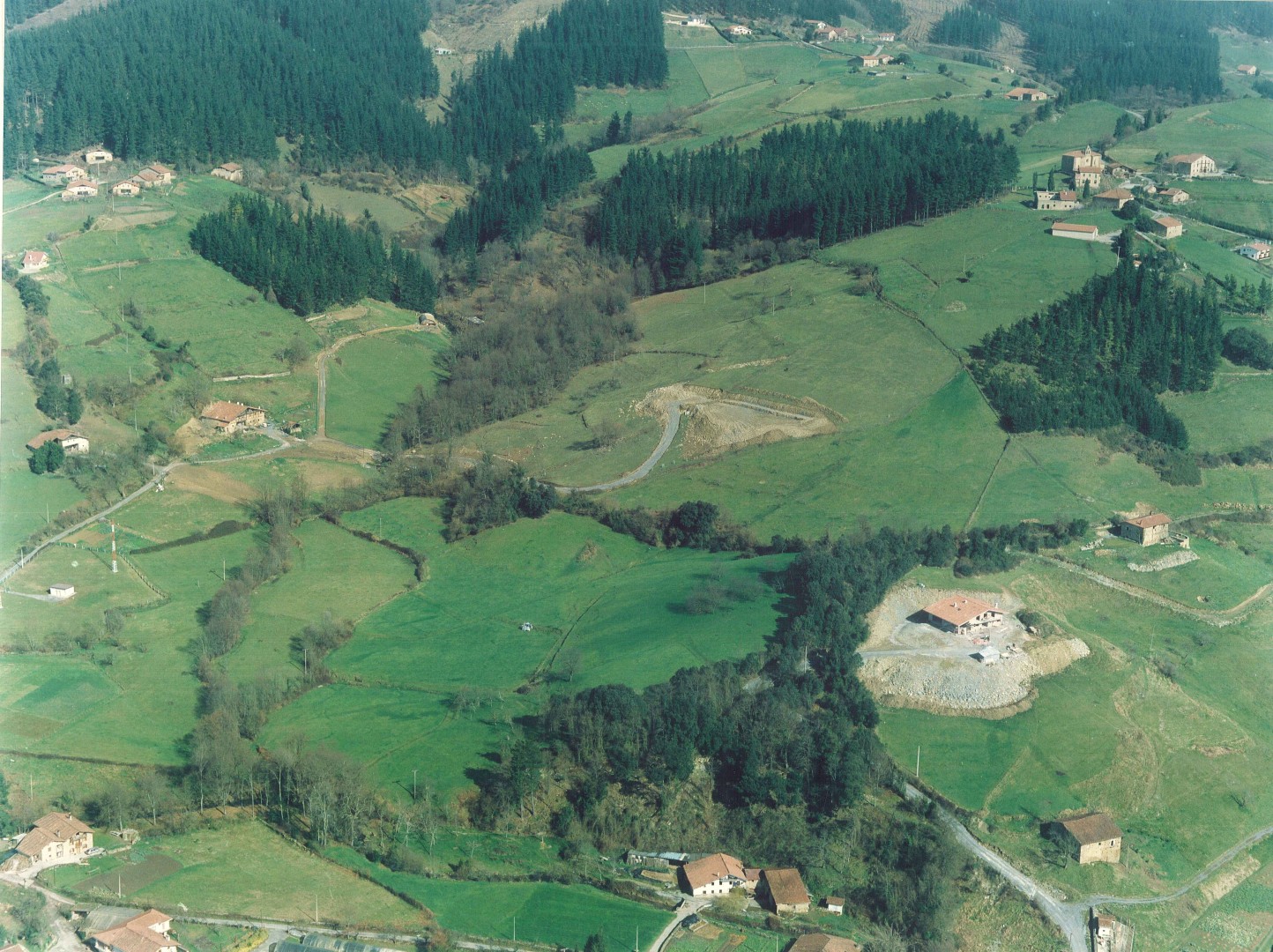 Informazio osagarria: Airetiko argazkia. Lebarieta inguruko baserriak ageri dira, laurogeigarren hamarkadan bertan eginiko lehendabiziko txaletak ageri dira. 2 eta 7 auzoetako baserriak antzematen dira.