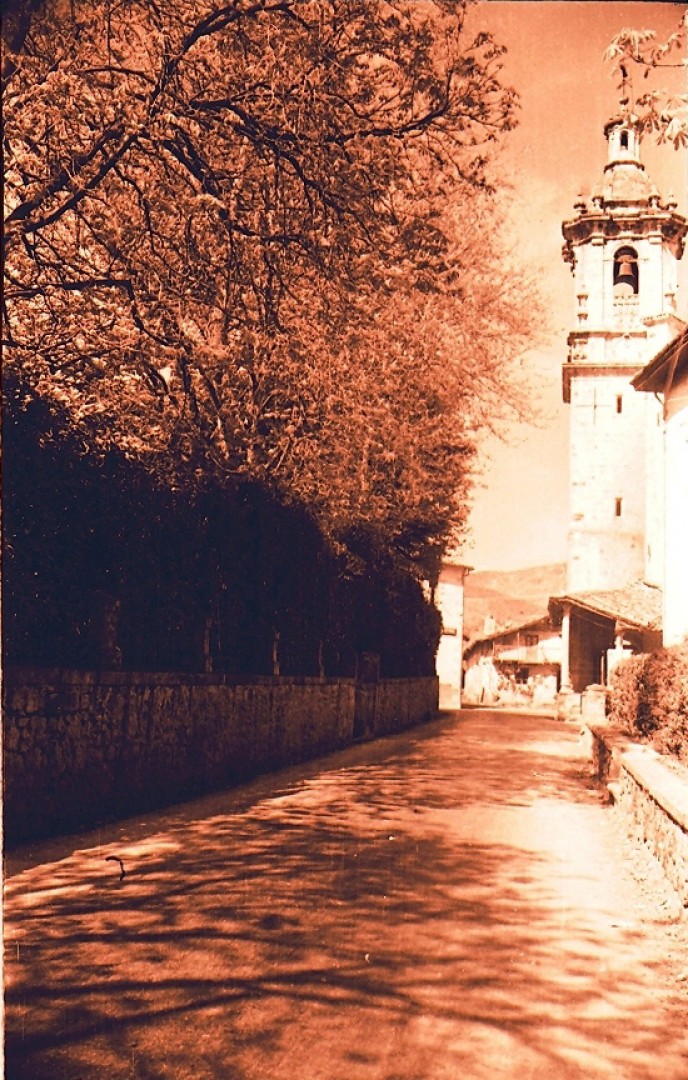 Informazio osagarria:Elizondoko bidea. Abeletxea eta Udaletxe zaharraren ertza. Aurrean San Juan Ebanjelaria Parrokia.