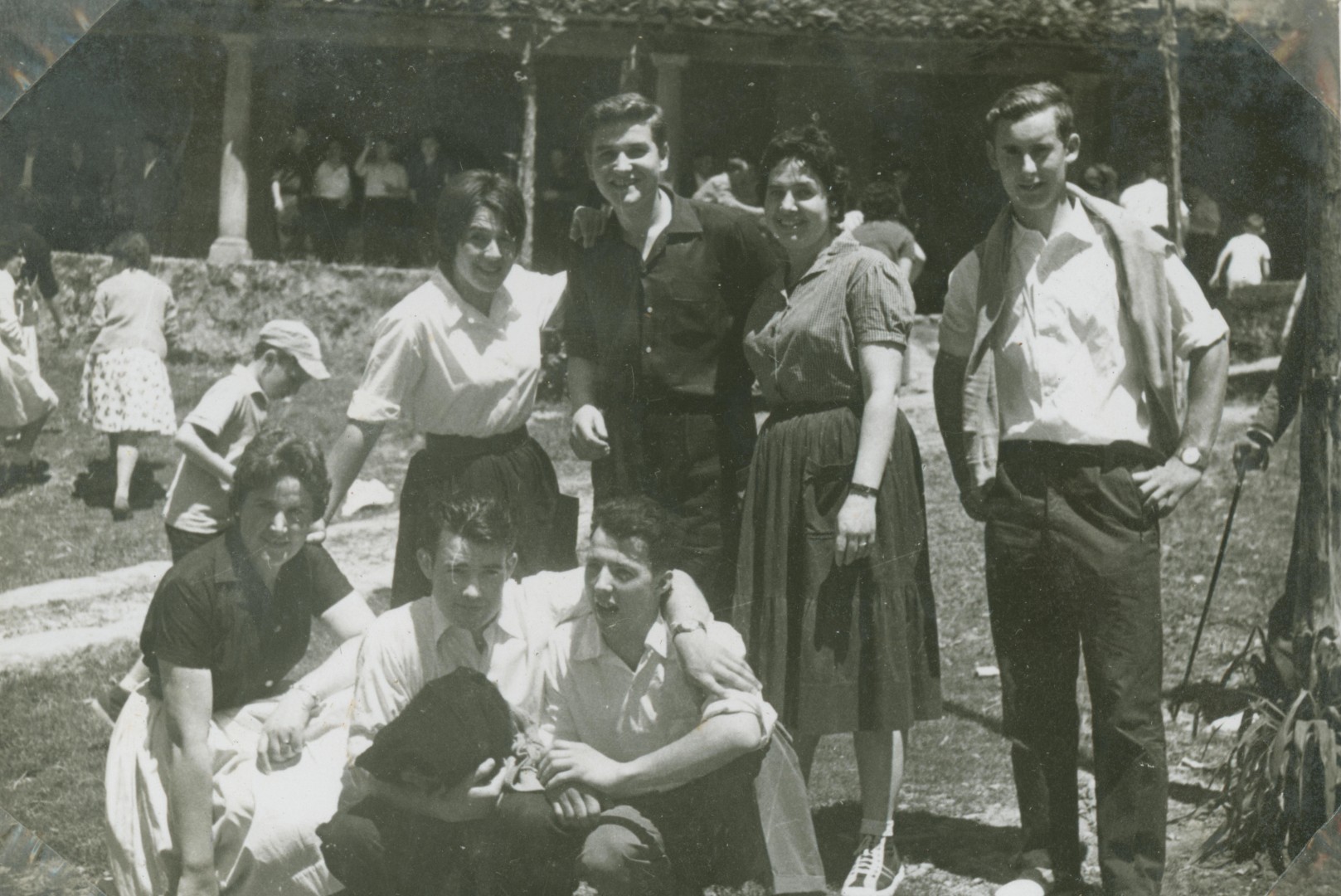 Informazio osagarria:San Asentzio jaiak Andikoan. Goian, ezkerretik: Maria Rosario Unzueta,Roberto Unzueta, Juanita Unzueta, Luis Gorroño. Behean, ezkerretik: Felisa Unzueta, Juan Aranoa, Valentin Lasuen.
