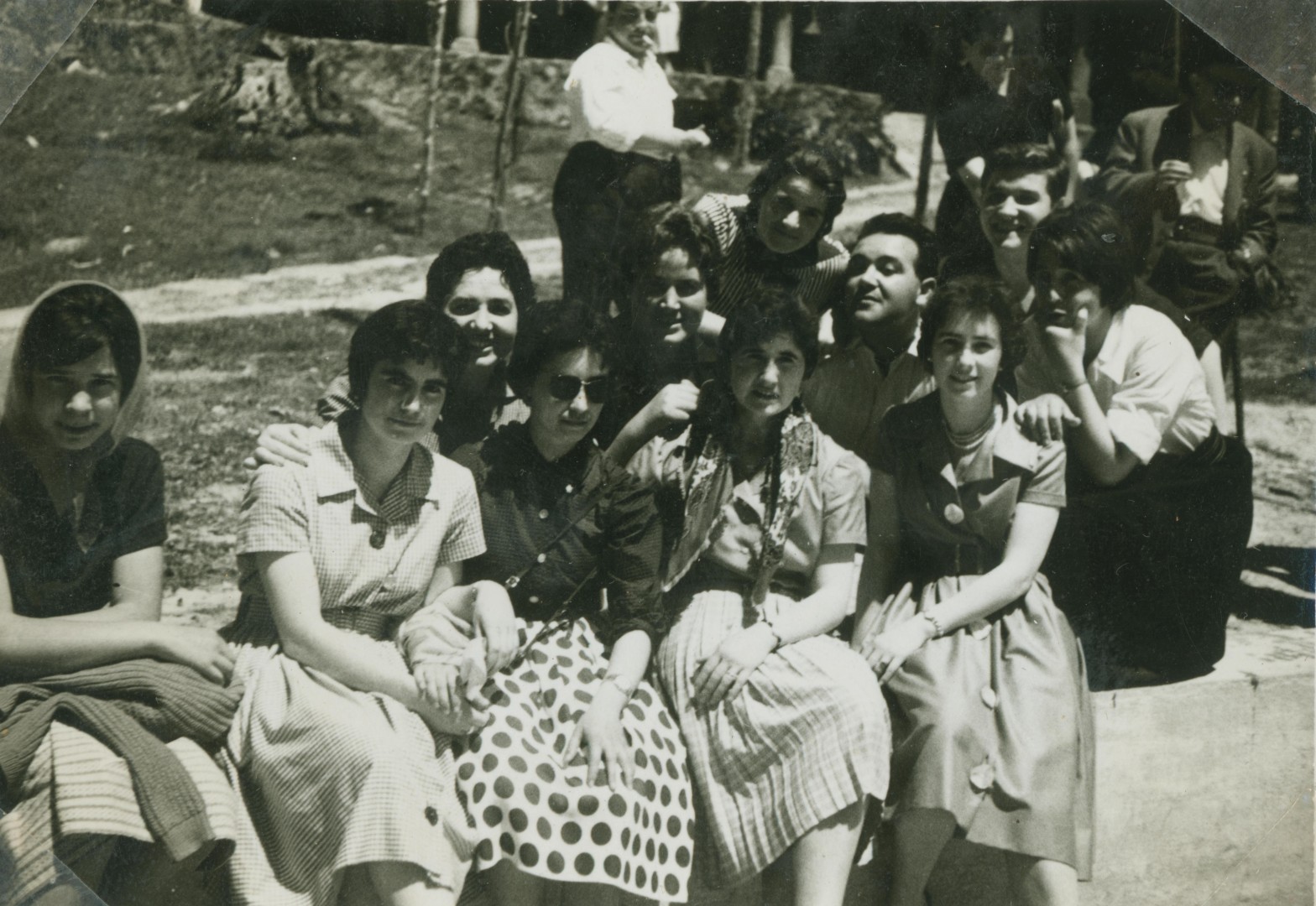 Informazio osagarria:Neska-mutil koadrila Andikoako San Asentzio jaietan. Behean. ezkerretik: Itziar Gorroño, Mari Tere Aranoa, Herminia Lazpita, Clarita Retolaza, Miren Angiozar. Atzean: Juanita eta Felisa Unzueta, (...), Rosario Unzueta. Atzerago: (...), Roberto Unzueta eta Anunciación Lasuen.