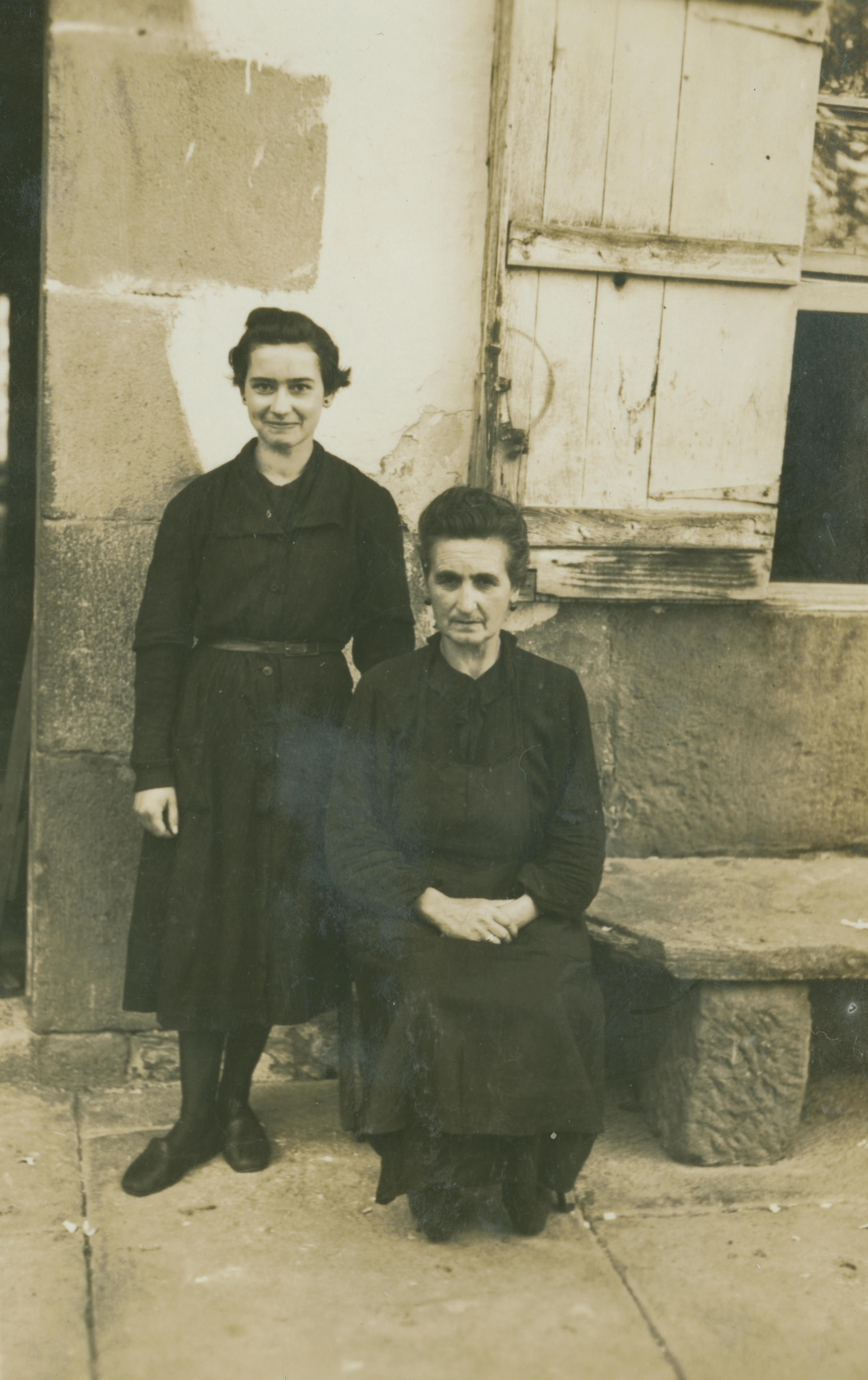 Informazio osagarria:Herminia Lazpita (zutik) eta Jakoba Dominika Besoitagoena (eserita), lutoz jantzita.