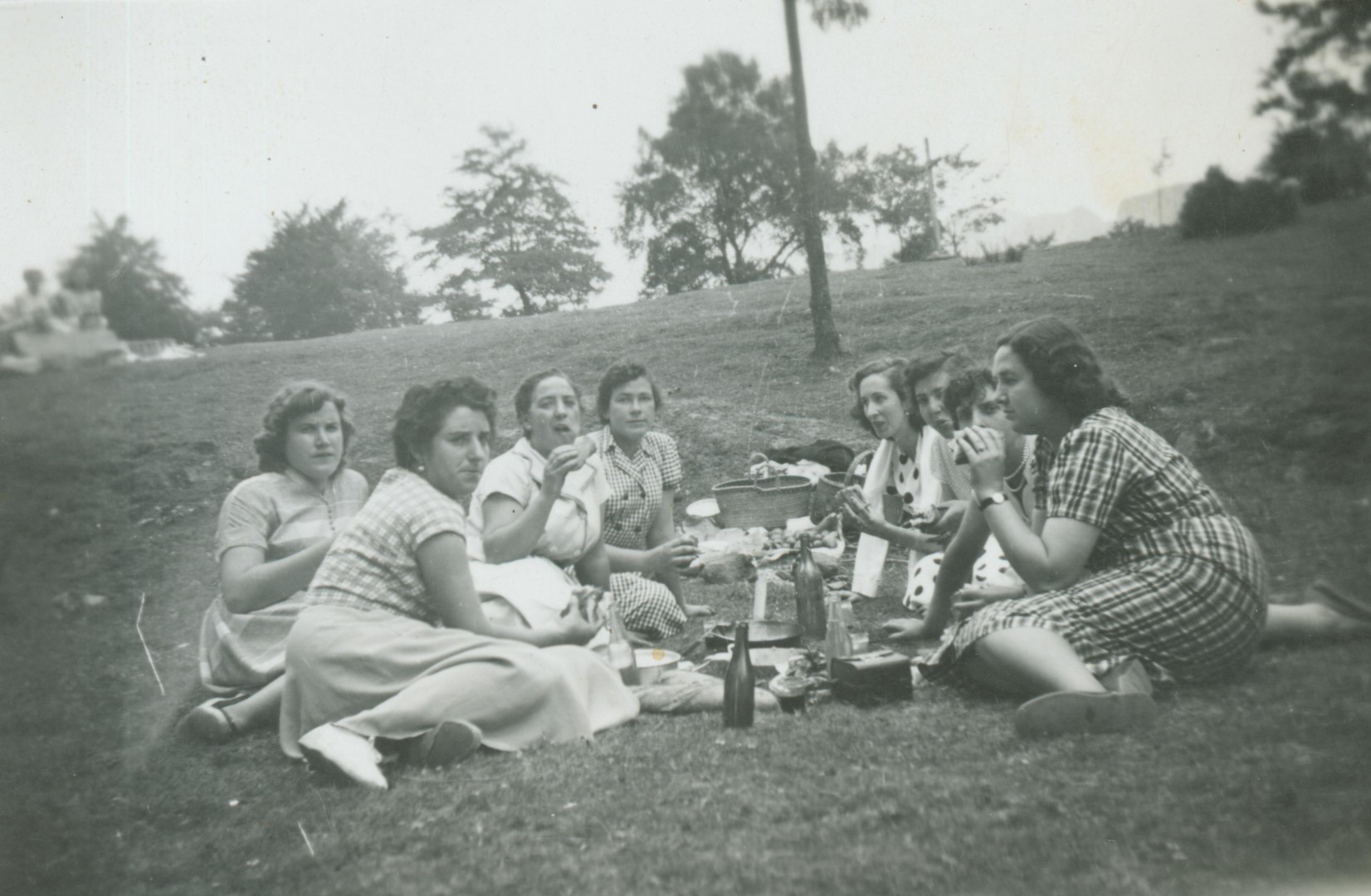 Informazio osagarria:Neska-lagunak egunpasa Urkiolan. Ezkerretik: Carmen Iturriaga, Felisa, Julia eta Carmen Unzueta, Maritxu Osinalde, Kristina Gaztelurrutia, (...), eta Juanita Unzueta.